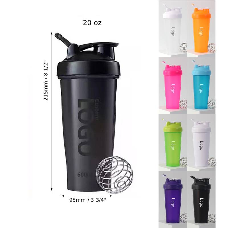20 oz plastic shaker bottle with stainless steel mixer ball for smooth mixing. Leak-proof, durable, and fits most car cup holders. Ideal for gym and promo use. PMS available for product color and imprint. Overseas production. Lower quantity available. Includes ocean freight delivered to NY.
